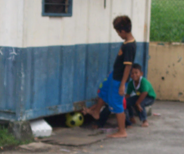 Dengan hanya berkaki ayam (bare footed), sekumpulan kanak-kanak menjadikan kawasan pintu masuk ke pasar Payang sebagai padang terbuka. Bola yang digunakan memang selamat walaupun ditendang dengan kencang ke arah sesiapa. Sebab itulah orang dewasa tidak kisah  atau berasa tidak selesa.